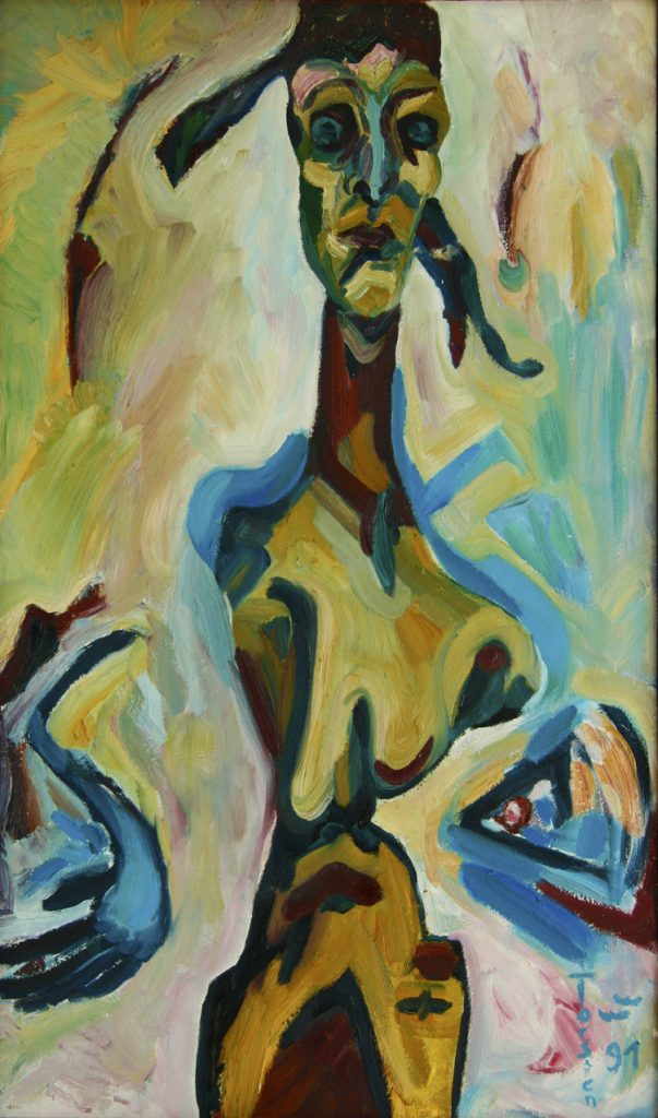 Torsten Schlüter, „Die Gefolterte“, 1991, Öl auf Harfaser, 95x57cm