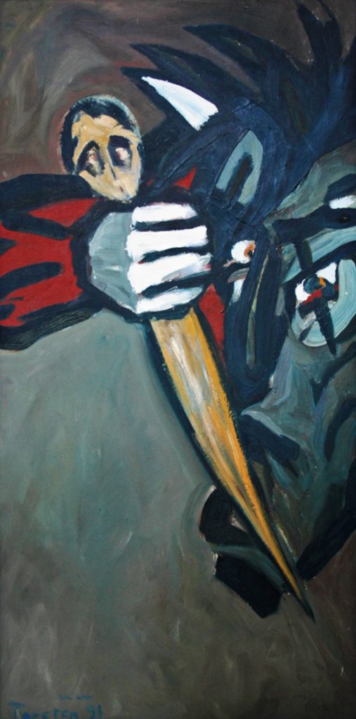 Torsten Schlüter, „Die Gewalt“, 1991, Öl auf Leinwand, 130x65cm