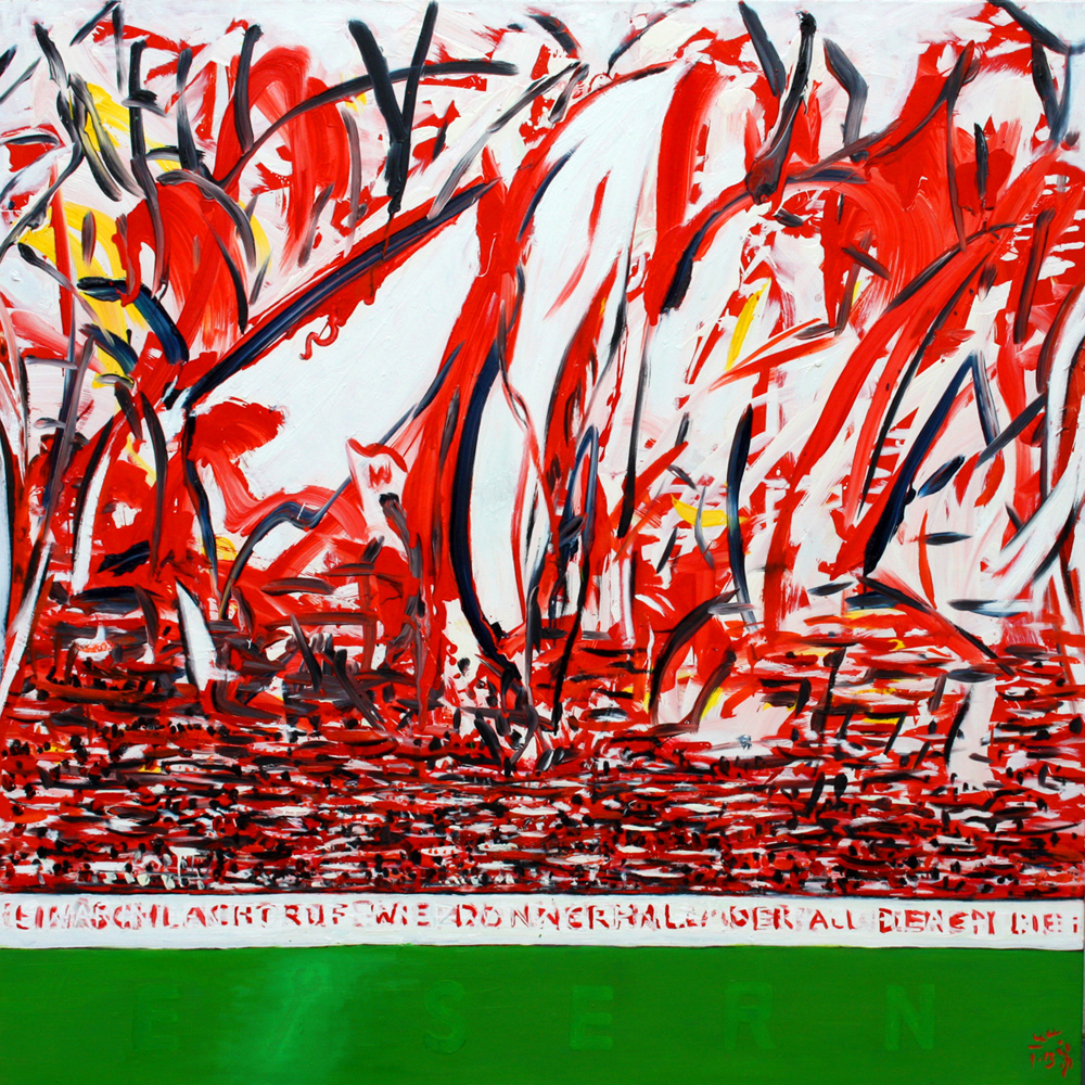 10 Oktober 2016 Torsten Schlüter, „Der zwölfte Mann, der Fanblock das schlagende Herz des Vereins“, 2001, Acryl auf Karton, 76x105cm 1.FC Union Berlin