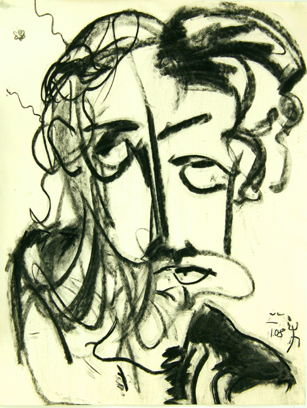 Torsten Schlüter, „Frau am Fluss“, 2018, Kohlezeichnung, 70x50cm