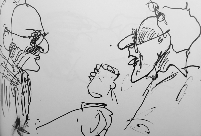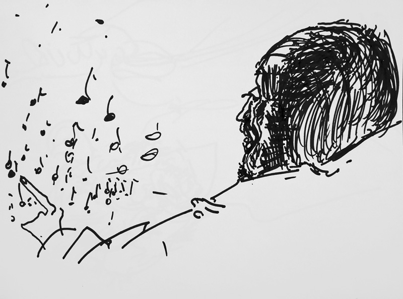 Torsten Schlüter, „Kurt Masur“, 2016, Tinte, 10x14cm