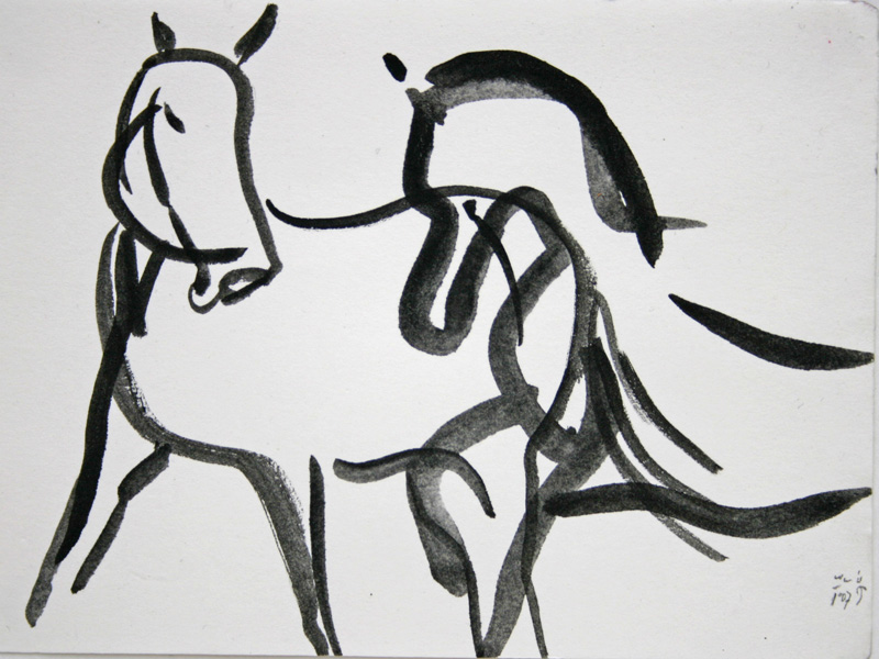 Torsten Schlüter, „Spielende Pferde“, 2007, Pinselzeichnung, 10x14cm
