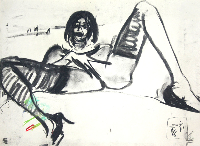 Torsten Schlüter, „Streifenmädchen“, 2016, Kohlezeichnung, 26x36cm