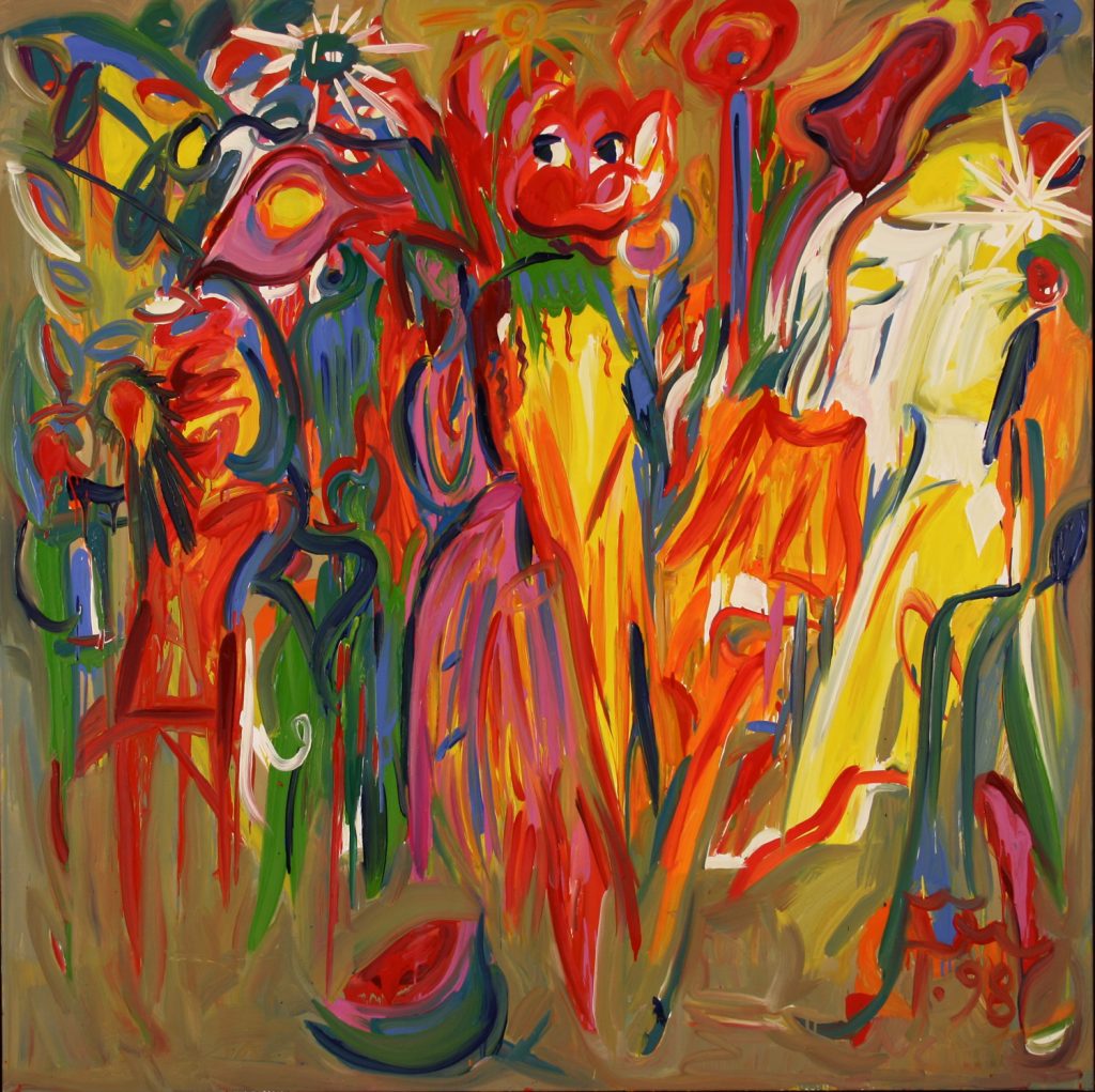 Torsten Schlüter, „Uma, Psylo, Mescalitho“, 1998, Öl auf Leinwand, 160x160cm
